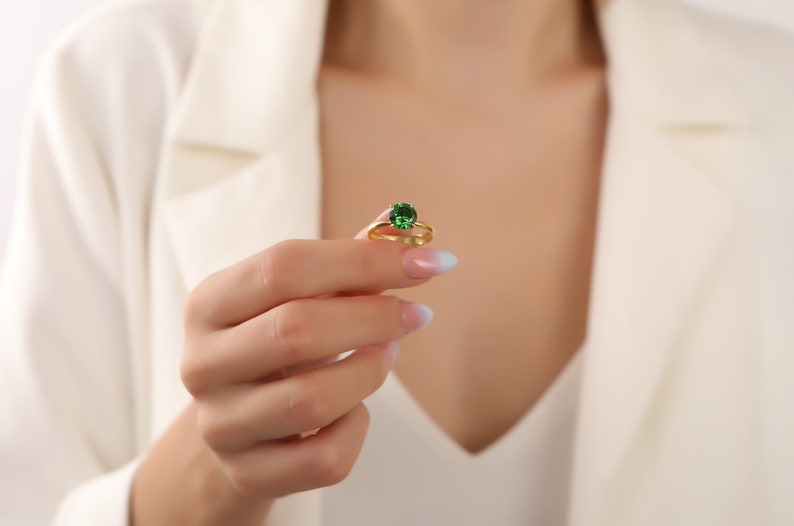 Crafted with ethically sourced gemstone, this ring offers all the fire and brilliance of natural gemstones while supporting a conscious, sustainable choice. Its timeless solitaire design makes it a meaningful symbol of enduring love.